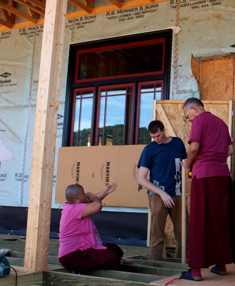 Under the able direction of the dedicated project manager, Britton Bosarge la, workers are finishing the exterior so it can withstand the coming winter weather, during which time the focus will shift to the main shrine room on the first floor—stairways, floors, elevator, heating, cooling, electrical, sprinklers, plumbing, dry-walling and painting. It is Rinpoche’s aspiration that Mindrol Lekshey Program and Vajrayana Retreat take place in the temple in 2018. Fundraising has now resumed and to ensure that the indoor work will be completed in time.