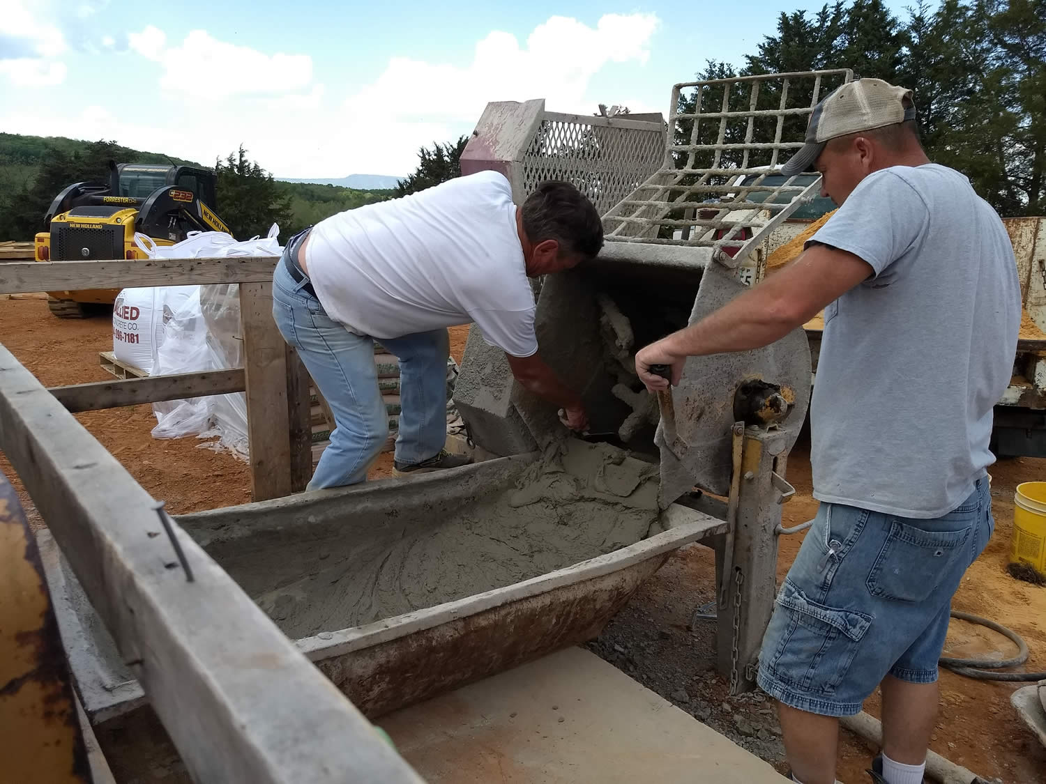 Earth-moving equipment has contoured the surrounding slopes into the foundation for a four-tiered formal garden—the Garden of the Four Immeasurables. Footpaths will lead from the lower end of the land through the garden up to the temple. A large concrete area in front of the temple will provide a gathering place for outdoor events and for the cham (ritual dances), an integral part of every drubchen (the full practice of a sadhana over seven to ten consecutive days).