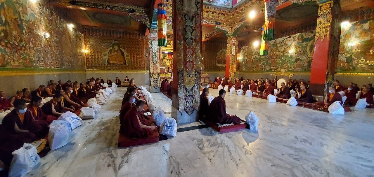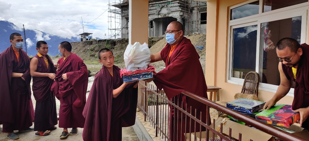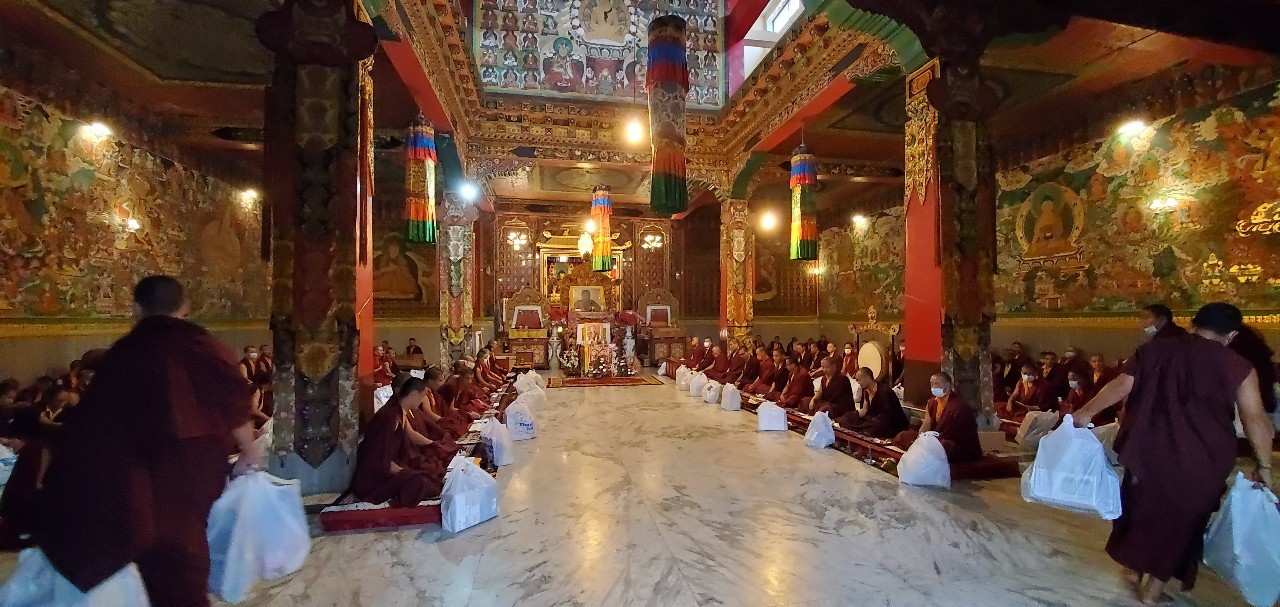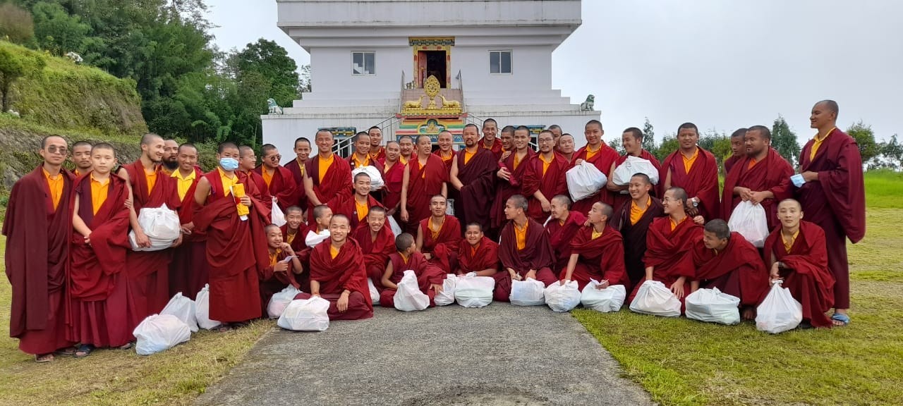 On July 28th, 2021, the entire Mindrolling sangha celebrated the birthday of Minling Dungse Rinpoche. Mindrolling Monastery and the branch Mindrolling Monasteries in Lava, Kalimpong and Sikkim, Samten Tse Retreat Center and Minling Pema Gatsal all began the day with the traditional mandala offering and extensive prayers for the long lives of Minling Dungse Rinpoche and Minling Jetsün Rinpoche. To mark the auspicious occasion, distribution of monetary donations, clothing, food, and basic needs was made to the entire community. The entire Mindrolling Sangha makes heartfelt aspirations for the long life of the two Rinpoches and the continued flourishing of the dharma throughout the world.