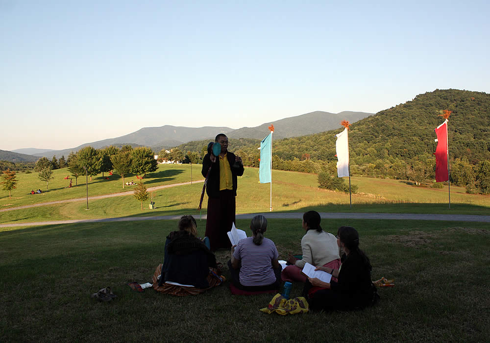 During the Annual Retreat (Sept 11- Oct 1), Mindrolling Jetsün Khandro Rinpoche led practitioners through an intensive practice and study retreat which had marked changes in the schedule from the retreats of past years. In addition to attending daily teachings, participants spent much of the time practicing in a retreat setting.