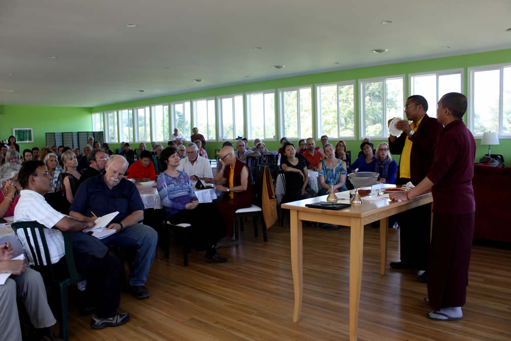 The program opened with teachings on Taming the Mind during which Rinpoche presented a mind-expanding view of shamatha meditation, the basic technique known to be the very ground of all practices. As part of the weekend, Rinpoche bestowed teachings on the ’37 Practices of the Bodhisattva’ to guide the study groups into this topic for the coming year. Simultaneously, Rinpoche presented the Daily Practice of Offering the Body, also known as Chöd.