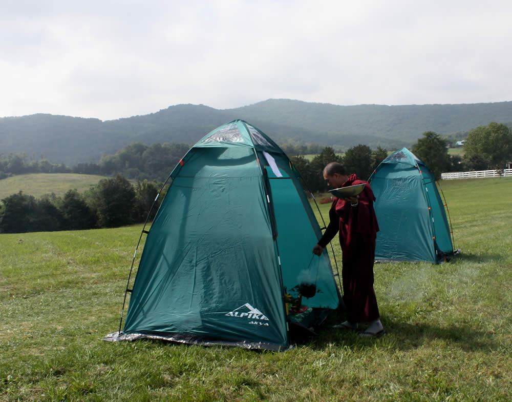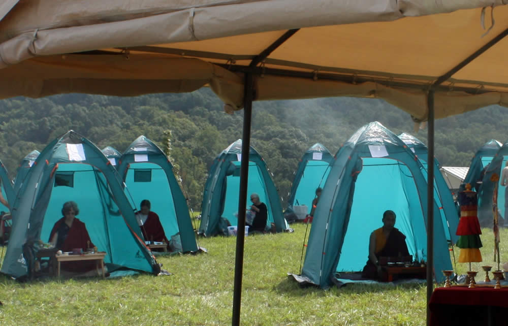 Armed with these profound practices, practitioners entered an intensive 6-day Chö Gar (Dharma encampment). Annual Retreat concluded with a 3-day drubchö with the sadhanas of Rigdzin Thugthig, Minling Dorsem and Tröma Nagmo.