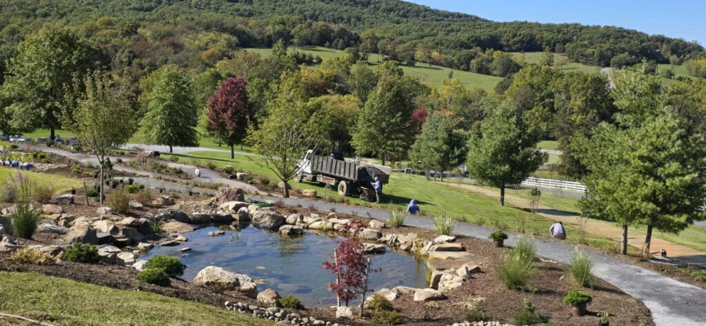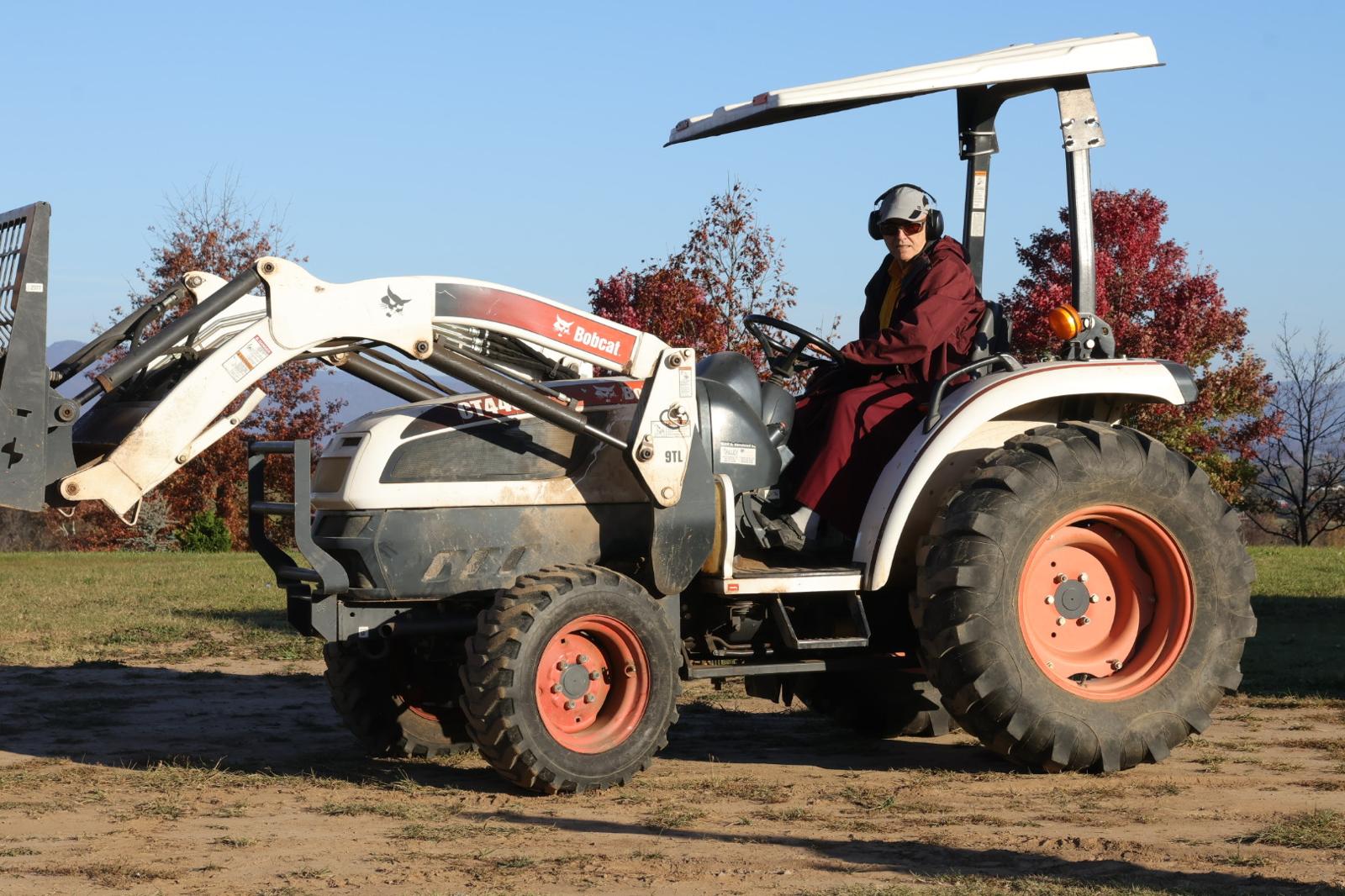 During this time, Rinpoche, Jetsunla, and Britton la were also making sure that all other aspects of Lotus Garden are properly prepared for the next phase of development. This includes additional landscaping around the temple and at the entrance to Lotus Garden. All landscaping is being done with Rinpoche’s vision of the Four Immeasurables gardens that progressively lead practitioners from loving-kindness to compassion, to sympathetic joy, and finally to perfect equanimity represented by Mindrol Gatsal itself. The area in front of the temple is being graded to provide a welcoming outdoor space for teachings and practices. This eastern side of the temple now has proper drainage and a paved path to access the temple. Additionally with the new temple Rinpoche, and Britton la foresaw the need for additional storage space at Lotus Garden. To this end, two new storage buildings have been built on the North side of the land. The Buddha Park is also being prepared for improvements and is joined with the circumambulation path that encircles Lotus Garden. Furthermore with the new temple, the water needs for Lotus Garden have greatly increased and additional wells are being sited and will be dug in the coming weeks.