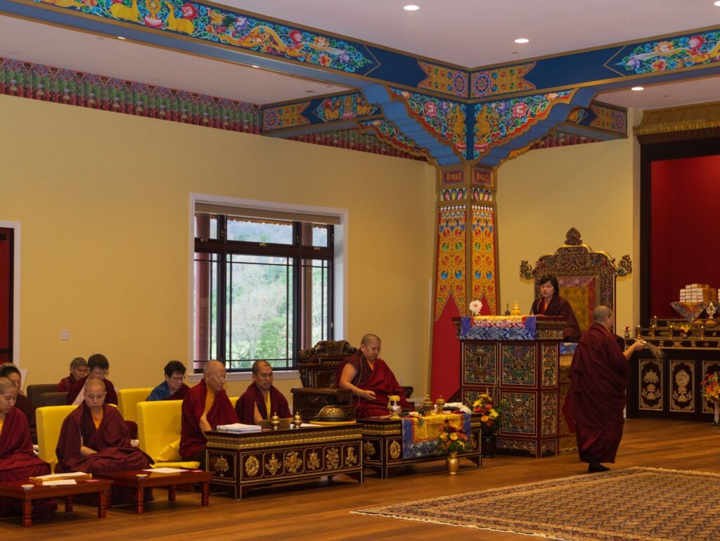 In parallel to all the happenings and events at Lotus Garden, Jetsün Khandro Rinpoche bestowed teachings and instructions on the practice of Guru Yoga to sangha members worldwide through the Dharmashri Online Portal. This online program incorporated practice sessions and teachings in Mindrol Gatsal that were translated into many languages by the Mindrolling International Dharma Instructors so that sangha members around the world could receive and understand these profound teachings. The program culminated on the 1st of January with the worldwide sangha joining the sangha at Lotus Garden via livestream to practice Guru Yoga together to gather all auspiciousness for the New Year.