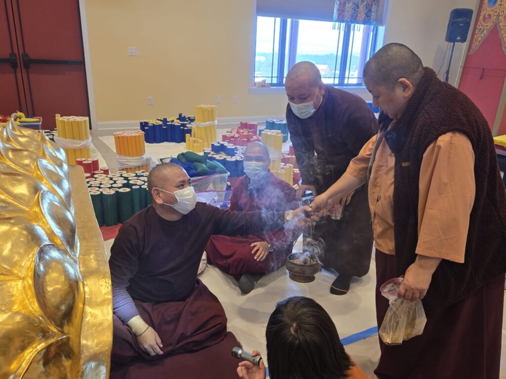 It is said that to engage in the work of filling and consecrating sacred representations is incredibly meritorious. While the monks, nuns, and those at Lotus Garden physically engaged in this activity, the entire Mindrolling International sangha was also fully engaged in bringing this to fruition. Sangha members from around the world generously donated to the Mindrol Gatsal project throughout the year. Through the Danabox and other ways, the funds that were raised made it possible for all of this to happen, and none of it would have been possible without the worldwide sangha’s care, generosity, and pure aspirations.
