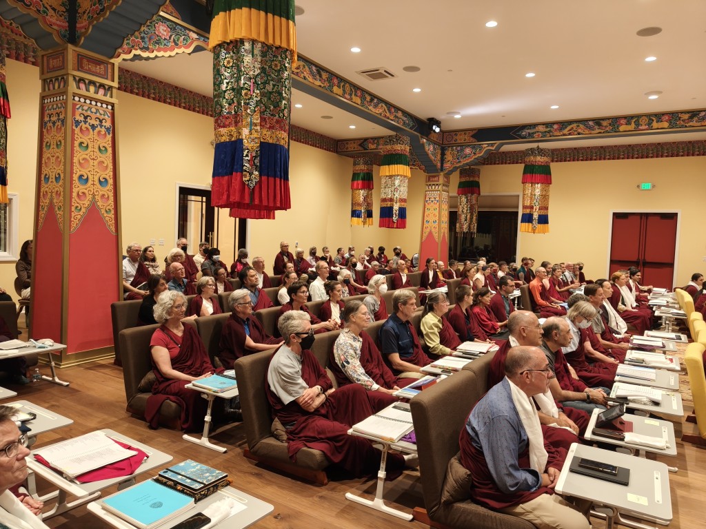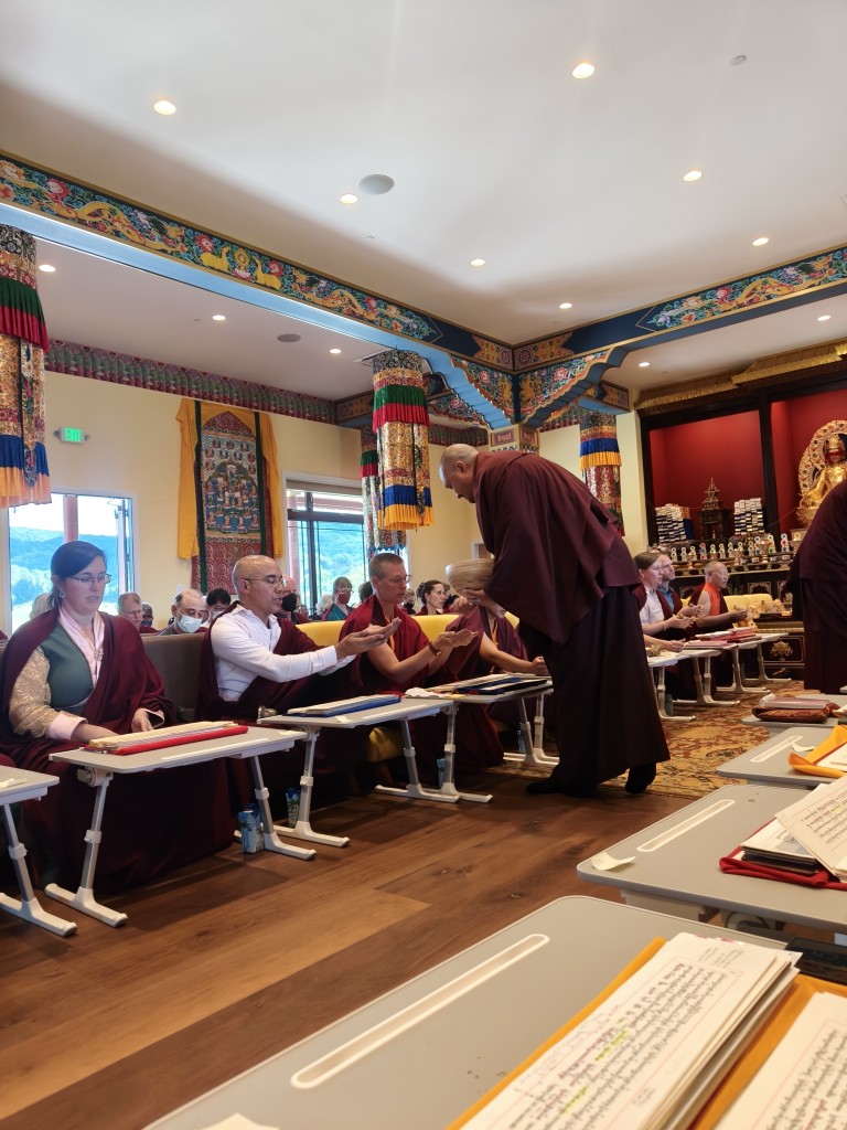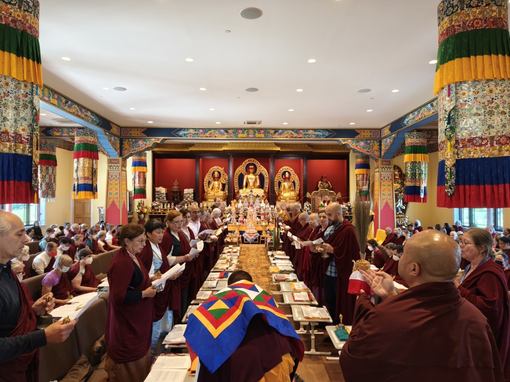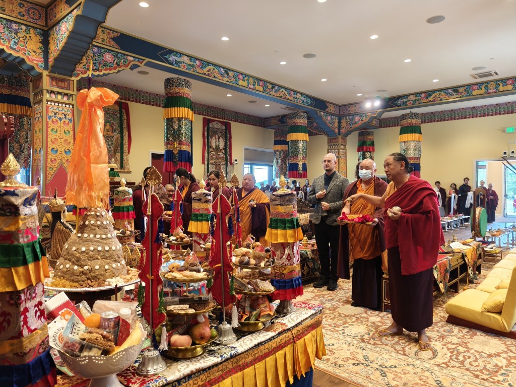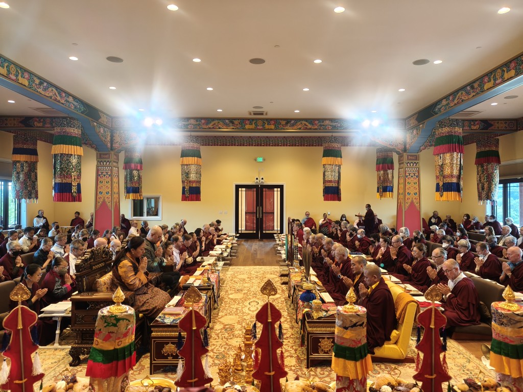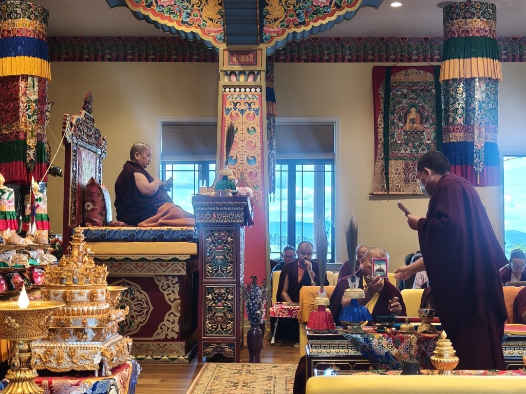 At the conclusion of the po chog, Rinpoche addressed the gathered assembly and the many sangha members who joined the online live stream. Rinpoche particularly thanked Jetsünla for her great vision, leadership, and tireless efforts for the sangha of Lotus Garden, Britton la for his wonderful dedication in overseeing the temple construction project, the many monks and nuns who have worked tirelessly in ensuring the completion of the temple, and the core members of administrative team for their service to the lineage and to Lotus Garden.
