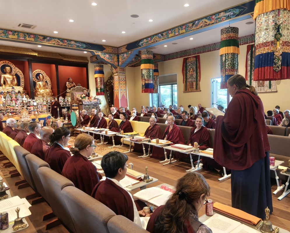 Rinpoche also expressed appreciation to the Lopöns of Lotus Garden who have for many years served the sangha and guided students in their practice and studies. Rinpoche also announced the new teachers who will take on the responsibility of guiding the sangha under Rinpoche’s direction. The new generation of teachers were appointed with the titles of Acharyas, Upa-Acharyas, and Dharma Instructors and entrusted them to now serve the Dharma and the sangha of Mindrolling. The formal entrustment of the new generation of teachers will be held in 2026.