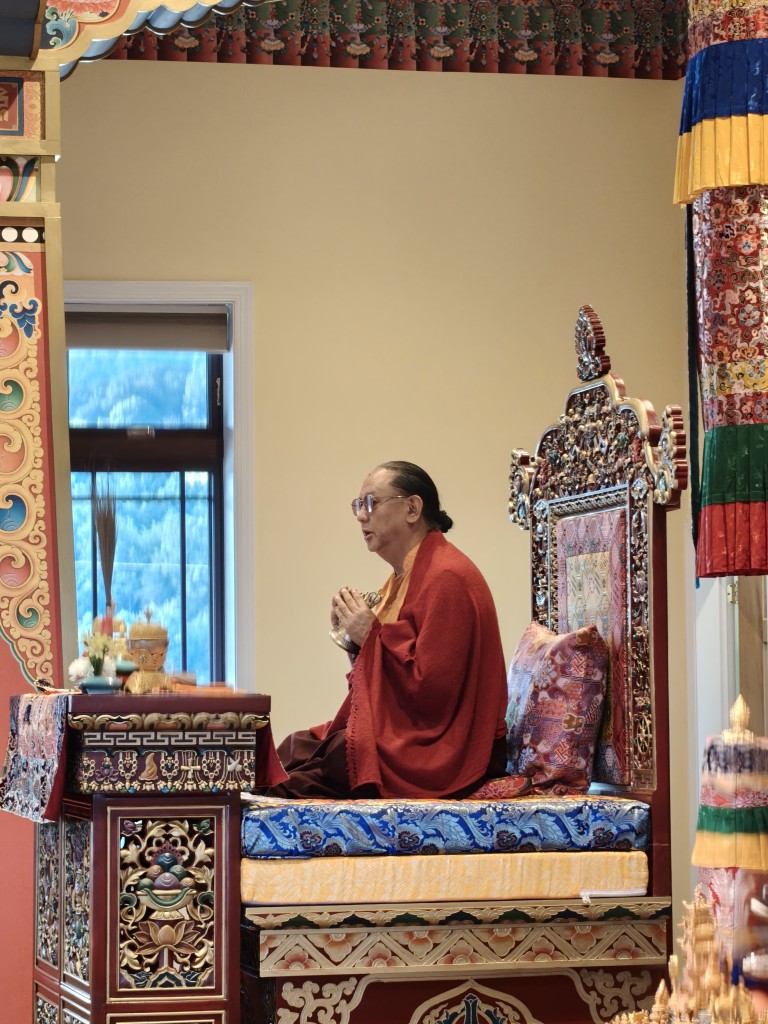On the first day of teachings, after the sangha offered the mandala and ten sum (body, speech, and mind offerings) to Rinpoche, the Practice Intensive retreat began in Mindrol Gatsal. For 13 days, the annual Practice Intensive Retreat continued as Rinpoche bestowed teachings and instructions intertwined with practice days in the format of gar, dharma encampment.