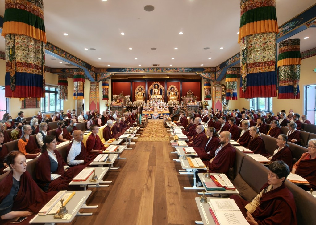 With the blessings and guidance of Minling Jetsün Khandro Rinpoche, Minling Jetsünla, and senior monks and nuns, the po chog and rabne of Mindrol Gatsal were completed this year. The official inauguration will be held in July, 2026. The Mindrol Gatsal inauguration will be a joyful occasion for the Mindrolling International sangha to gather and celebrate the opening of Mindrol Gatsal and the start of the next phase of Minling Pema Gatsal as the seat of Mindrolling in the West.
