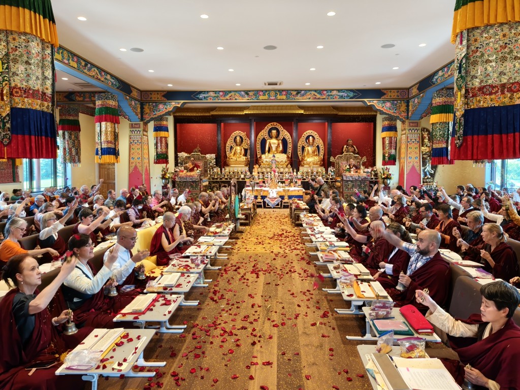 The Birthday of Minling Jetsün Khandro Rinpoche was celebrated on the 19th of August. Minling Dungse Rinpoche and Minling Jetsün Rinpoche offered mandala, ten sum, and the entire assembly of monks, nuns, and western practitioners made extensive prayers for Rinpoche’s long life and vast unobstructed Dharma activity.