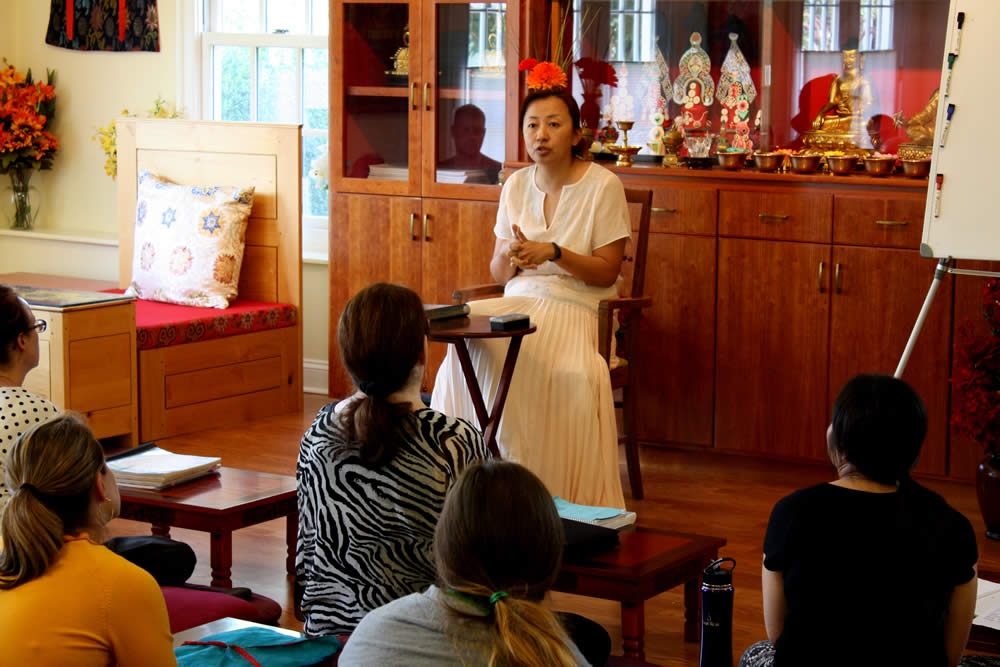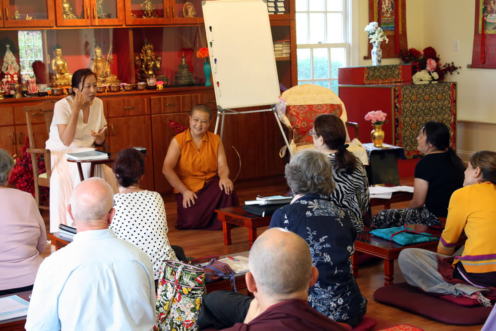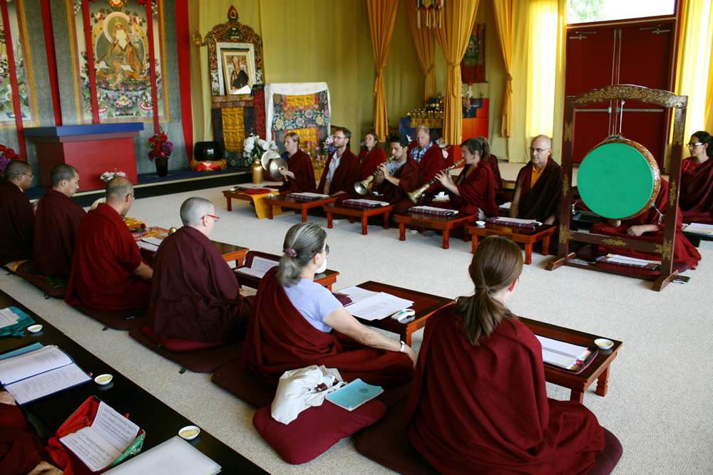 Students attended practice sessions in Tibetan textual reading and language, torma, mudra, melody and instrument review. Special training was also provided to representatives of the local study groups which are doing monthly sadhana practices.
