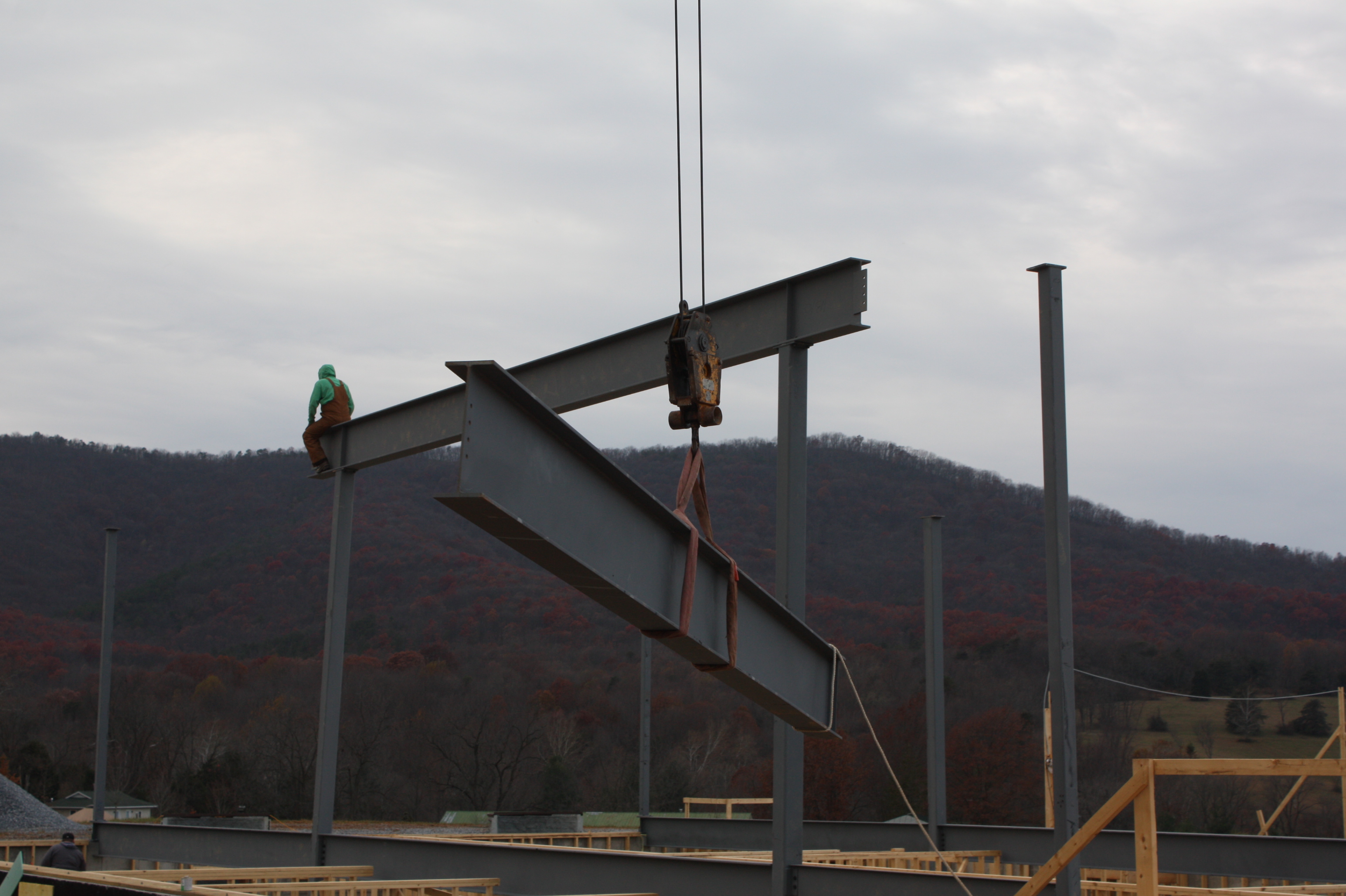 As the trees grew bare and November winds swept the land, the new temple, the main seat of Mindrolling in the West, rose above ground with the installation of the first phase of customized steel beams. Construction will continue through the winter months as workers work ready the main floor of the temple for summer programs.