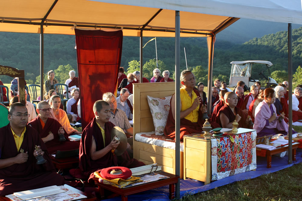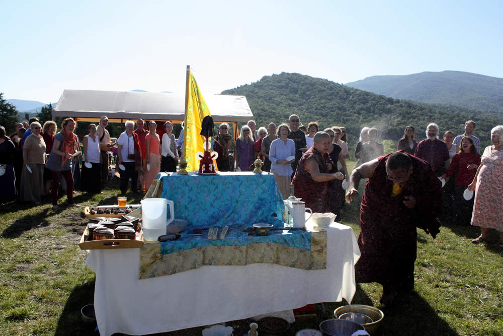 On the joyful and auspicious day of August 2nd, at the request of Mindrolling Jetsün Khandro Rinpoche, HE Dzigar Kongtrul Rinpoche, with great kindness, led the sangha in a blessing ceremony for the future temple site.